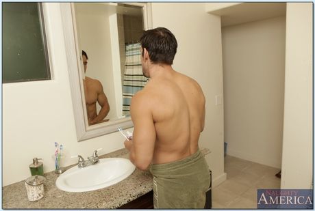 Naughty America: Sexig latina brud Breanna gnister remsor och visar hennes rakade fitta