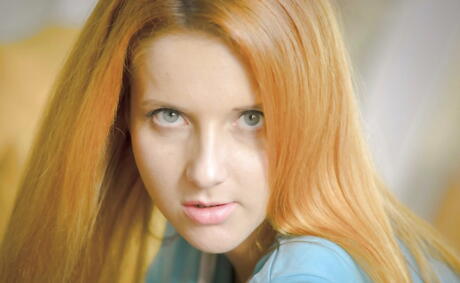 Babes Network: Välformade ryska rödhåriga Roberta Berti i heta trosor förnekar små bröst och skallig fitta