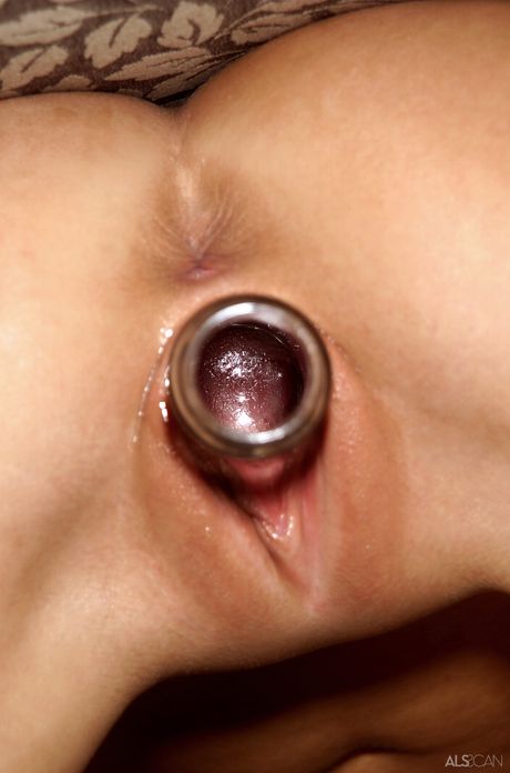 ALS Scan: Skinny blond brea Bennett remsar och leksaker hennes rakade fitta i köket