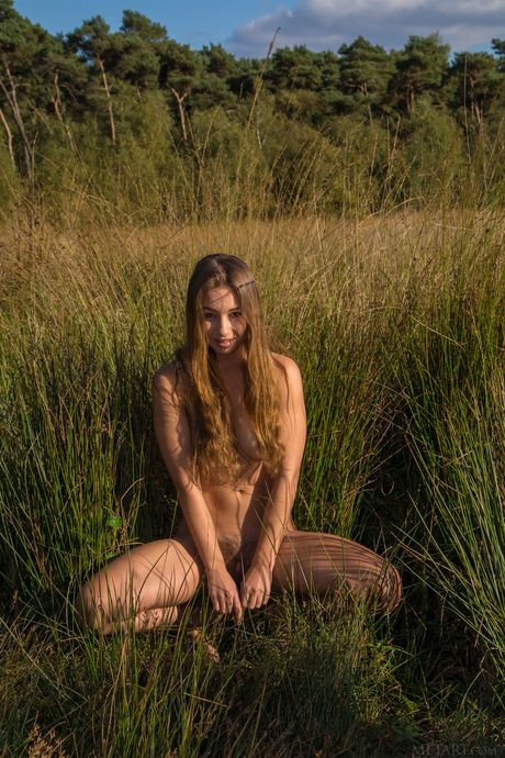 Met Art: Skinny Blonde Taylor Sands poserar naken i skogen och visar sin håriga fitta