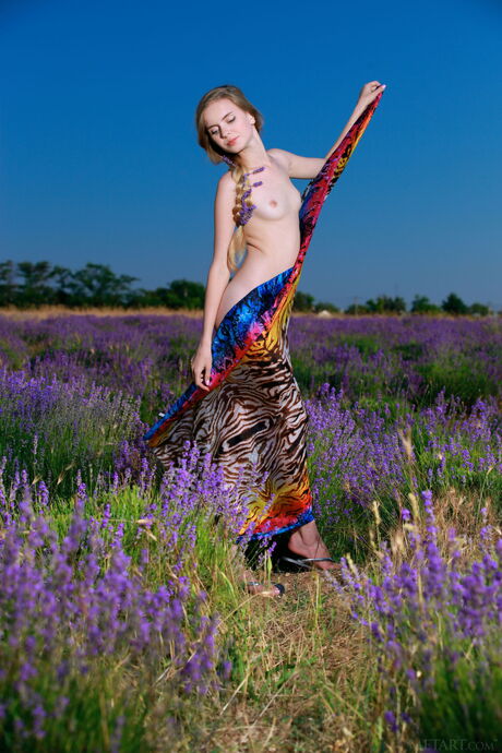 Met Art: Skinny Blonde Teen Honey Liz blir naken i trädgården