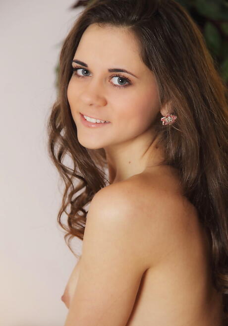 Met Art: Slank brunett Teen Etna i trosor avslöjar hennes röv och hårig fitta