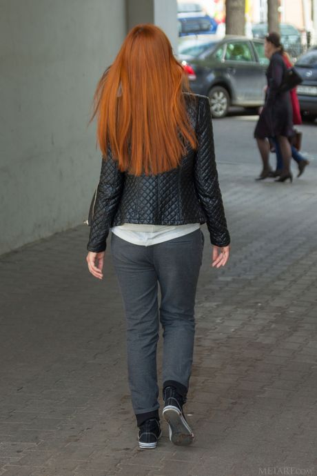Met Art: Slank Teen Carinela tar bort sin jacka och byxor för att posera naken i sitt rum