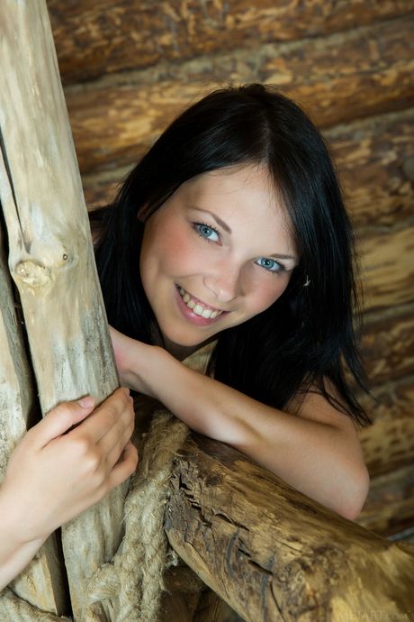 Met Art: Slank tonåring Yvonne A visar hennes små bröst och twat i naken