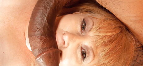50 Plus Milfs: Fantastisk amerikansk blond ålder Miriam Harding i kjol i heta interracial 3some -action