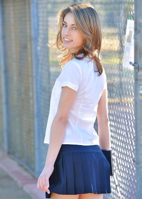 FTV Girls: Sylphlike amerikansk rödhårig ungdomlig Kristen Scott visar små bröst och sprider benen utanför