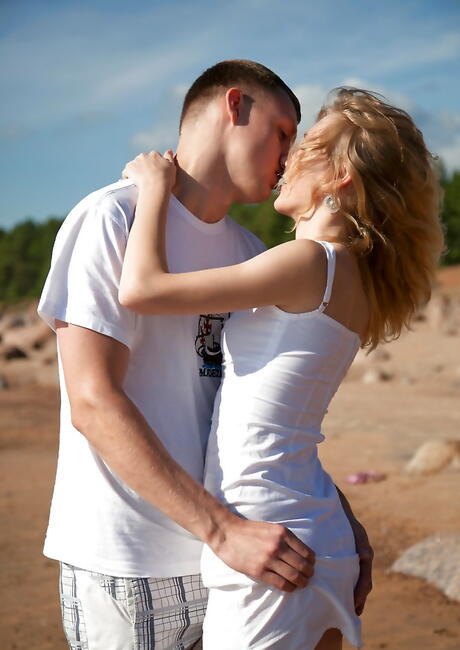 Nubiles: Sylphlike Blond Teen Mariana i snygg kjol suger kuk och ta den i rakad fitta på stranden