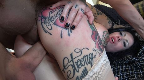 Evil Angel: Tatuerad porrstjärna Megan Inky blir dubbel knullad av två hängande män
