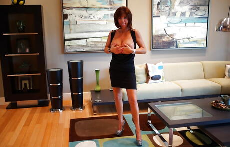 Wifeys World: Mycket attraktiv amerikansk brunett fru Sandra Otterson i snygga kjol som exponerar stora bröst och sprider benen