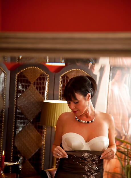 Anilos: Mycket attraktiv brittiska mogna Elise Summers avslöjar stora knockers och sprider benen