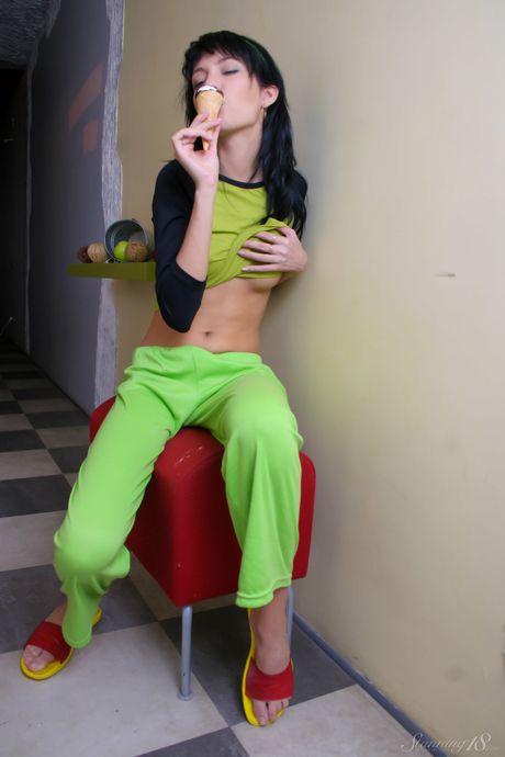 Stunning 18: Vinnig tonåring Elizabeth y remsor av på en säng utan blyghet