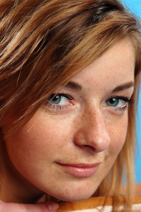 Stunning 18: Unga rödhåriga Ekaterina D går naken på en säng utan blyghet