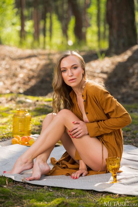 Met Art: Aislin 脱下白色连衣裙,露出大奶子和剃光的阴户