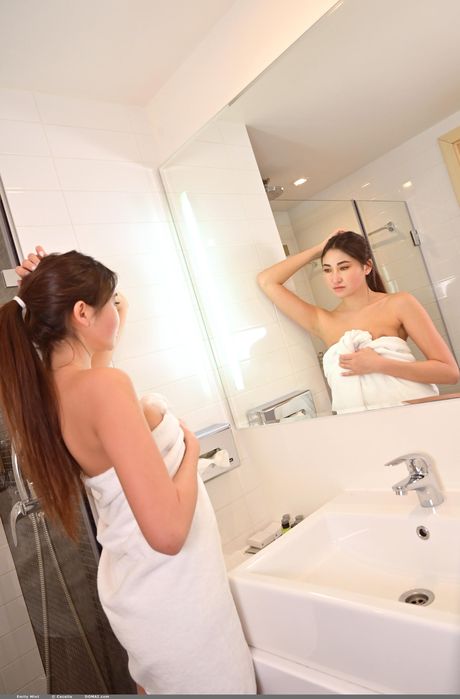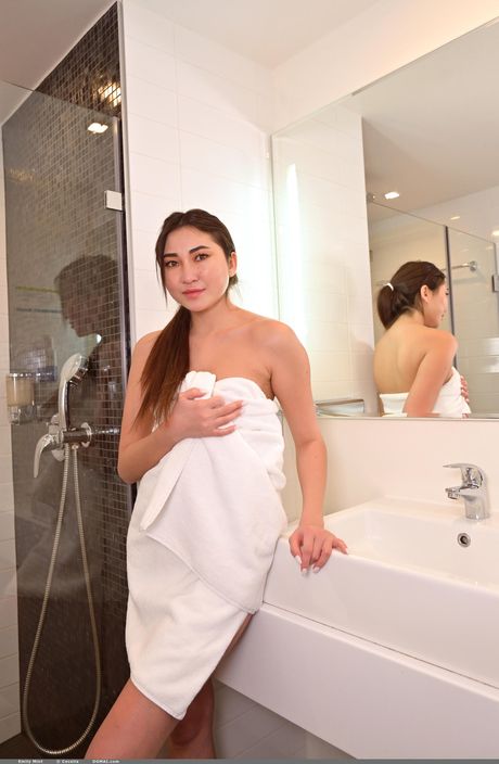 Domai: 亚洲少女艾米莉-敏特(Emily Mint)在淋浴前脱掉内衣
