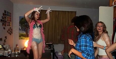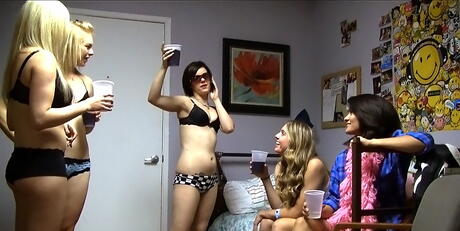 Dare Dorm: 迷人女子米西-马瑟斯、肯德尔-肯尼迪和尼基-尼尔在醉酒派对上吸吮热鸡巴