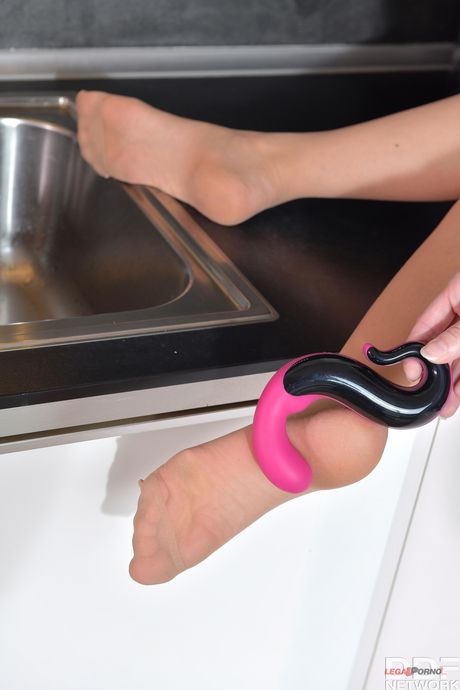 Porn World: 金发女郎 Anastasia De Vine 露出她的大奶子,玩弄她剃光的阴部