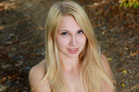 Met Art: 金发美女肯德尔在荒野中赤身裸体,展示她的大奶子和秃头阴户