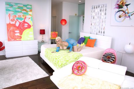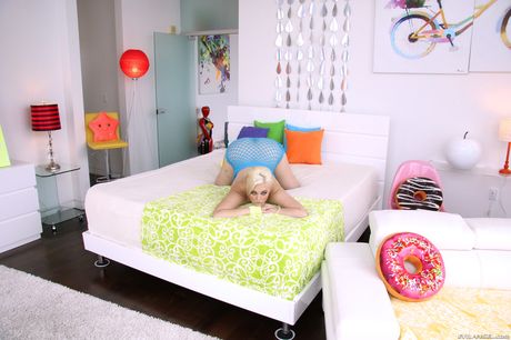 Evil Angel: 金发碧眼的珍娜-艾沃里穿着高跟鞋展示她的大奶子和大屁股