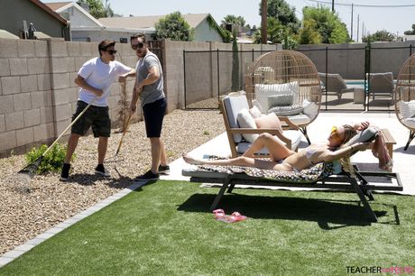 Nubiles Porn: 金发女教师阿迪拉-阿卢尔(Adira Allure)同时与两名学生发生性关系