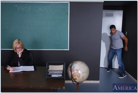 Naughty America: 金发女教师卡米琳-克洛斯脱衣展示穿孔阴部