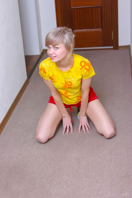 Stunning 18: 金发少女安杰莉卡穿着条纹袜和高跟鞋赤身裸体
