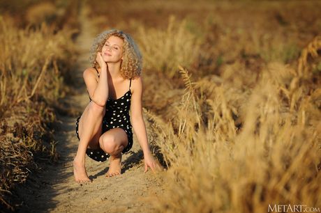 Met Art: 金发少女海伦娜在向日葵地里脱掉所有衣服