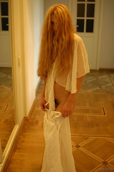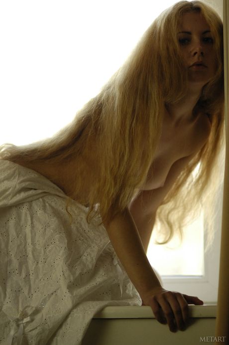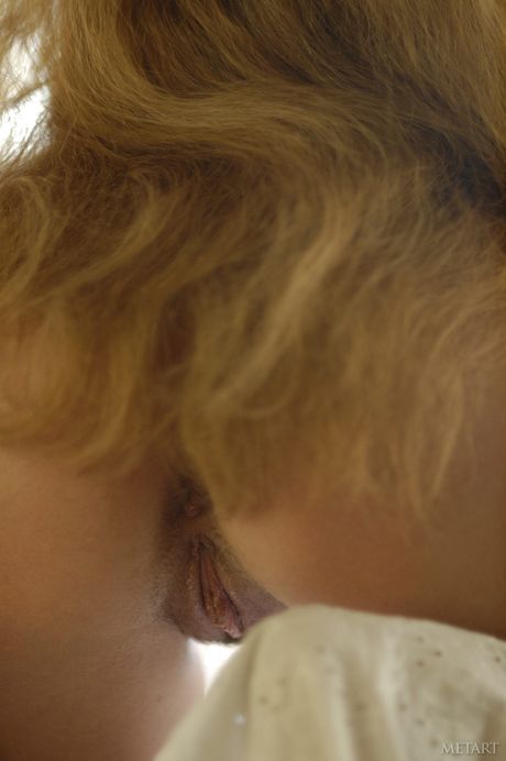 Met Art: 金发少女 Sasha M 脱掉裙子摆出裸体姿势,毫不尴尬