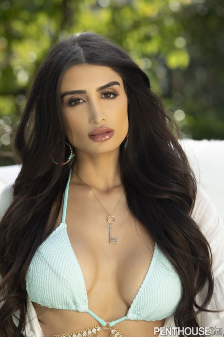 Penthouse Gold: 黑发中锋米娅-文图拉展示她的假奶子和剃光的阴部