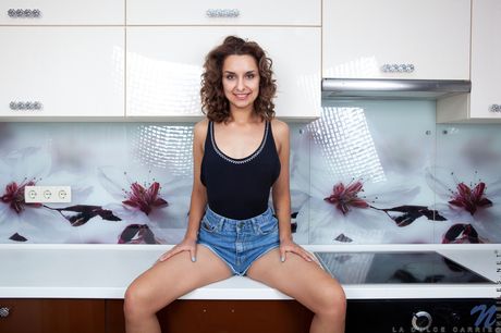 Nubiles: 黑发少女 La Dolce Carrie 穿着白袜子在厨房里脱光光