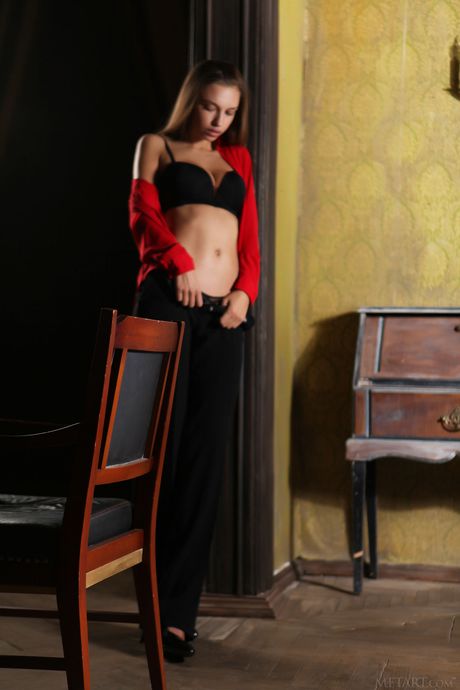 Met Art: 迷人少女伊琳脱掉内衣,在阴影中摆出裸体姿势