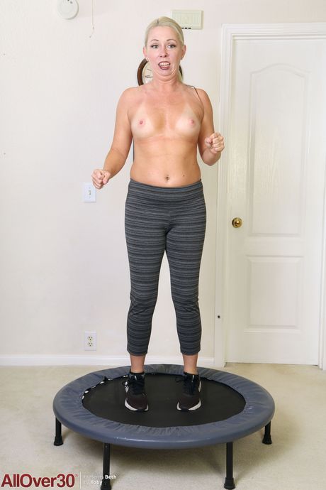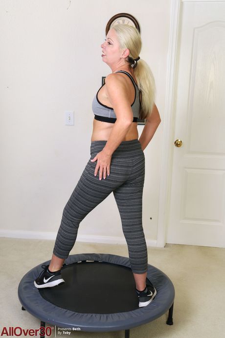 All Over 30: 胖乎乎的成熟贝丝在蹦床上展示她的大屁股和美味的阴部