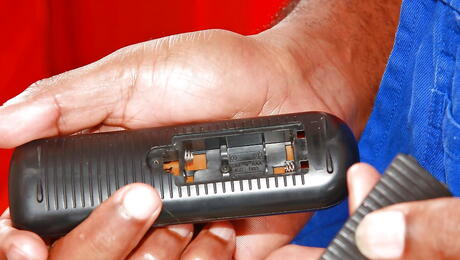 Hairy Twatter: 穿着性感丝袜的黑发莉娜好奇地吸吮深黑色鸡巴,享受口中的精液喷射