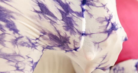 Wet And Puffy: 好奇的黑发美女 Quincy 穿着火辣内衣光屁股打飞机