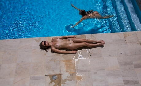 We Live Together: 好奇的女子阿比盖尔-麦克(Abigail Mac)和玛莲娜-摩根(Malena Morgan)在泳池边火热的女同性恋性爱中舔舐粉红色的阴部