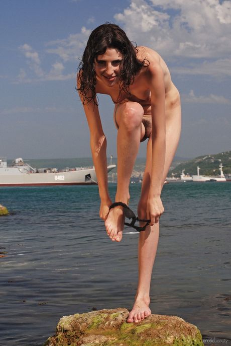 Erotic Beauty: 娇嫩少女 Ksu 在海滩上展示她的小乳房并摆出裸体姿势