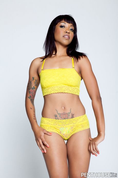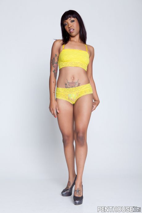 Penthouse Gold: 拥有天然乳房的黑木宝贝 Lotus Lain 独自展示她的身体