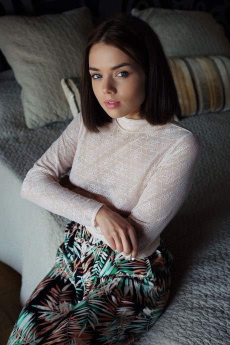 Met Art: 迷人少女凯拉-布鲁摘下墨镜和裤子,赤身裸体躺在床上