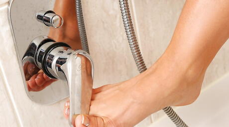 Eve Angel Official: 优秀的美国小母牛 Eve Angel 在浴室中露出大胸部和多毛的阴道