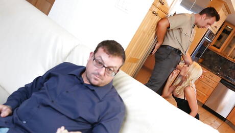 Real Wife Stories: 优秀的澳大利亚金发人妻 Gigi Allens 在厨房享受 3 人硬核性爱