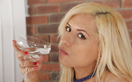 Wet And Pissy: 穿着性感丝袜的金发美女杰西卡露出小乳房并自慰