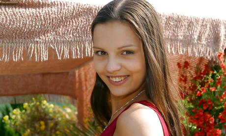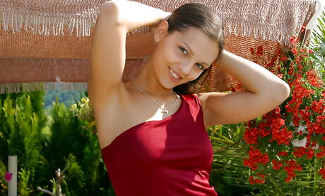 Karups Private Collection: 深色头发的年轻伊娃露出大奶子和阴部户外照