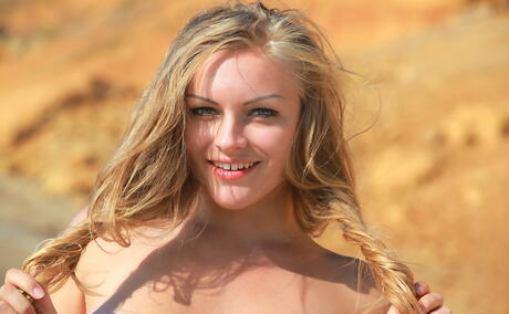 Met Art: 热辣金发少女亚历山德拉-A 身着性感比基尼,在海滩露出大奶子和秃头阴户