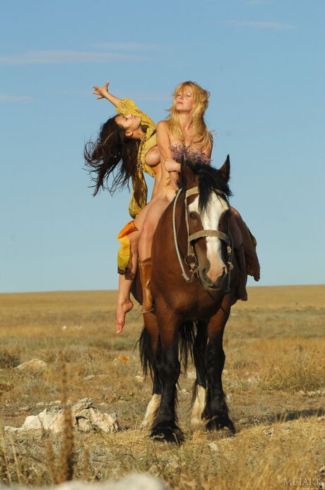 Met Art: 热辣少女 Sofi A 和 Yara A 骑着马摆出裸体姿势