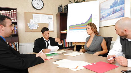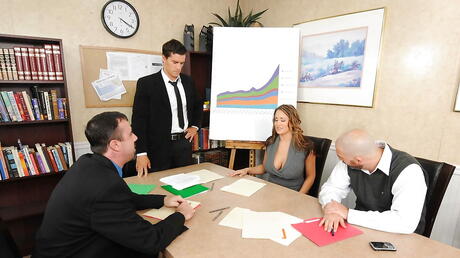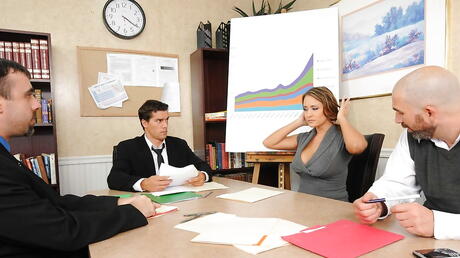 Big Tits At Work: 穿着丝袜的热辣特丽娜-迈克尔在办公室里吸吮鸡巴并把它插进屁眼