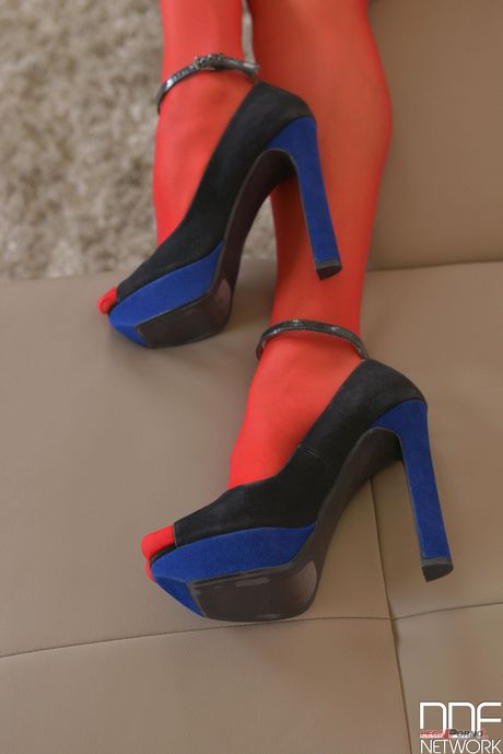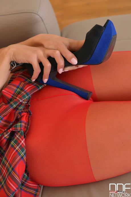 Porn World: 引人入胜的少女 Roxy Dee 脱下连裤袜,在独舞中揉搓自己的阴部