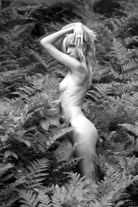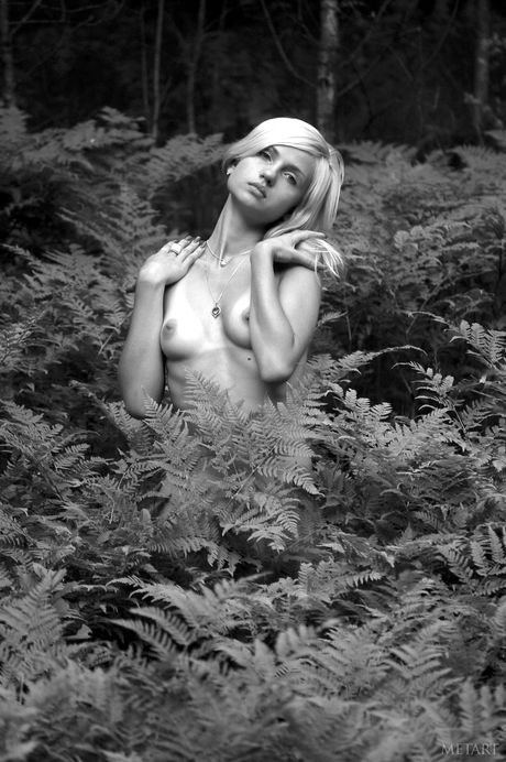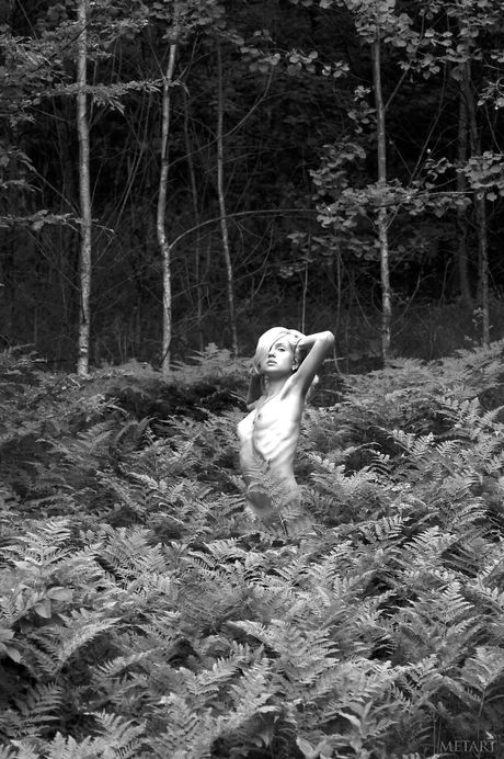Met Art: 身材苗条的少女奥丽雅-A 在森林中赤裸上身,展示她的小乳房和小脚丫