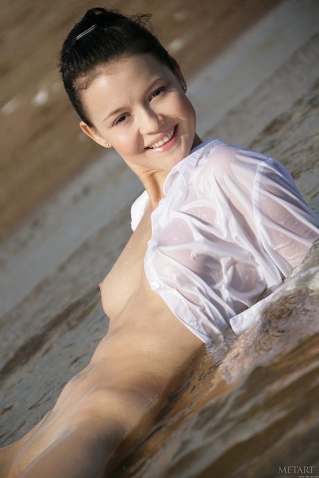 Met Art: 可爱少女 Galateya A 脱下比基尼,在岩石海滩上摆出裸体姿势