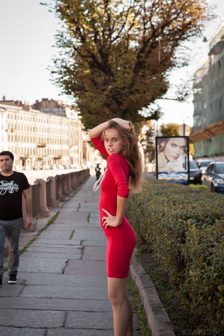 Sex Art: 可爱的少女格蕾西脱掉连衣裙和丁字裤,穿着高跟鞋赤身裸体