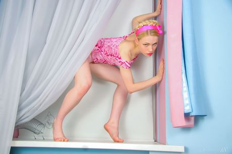 Stunning 18: 可爱的少女 Olya N 脱光衣服,张开长腿露出阴部