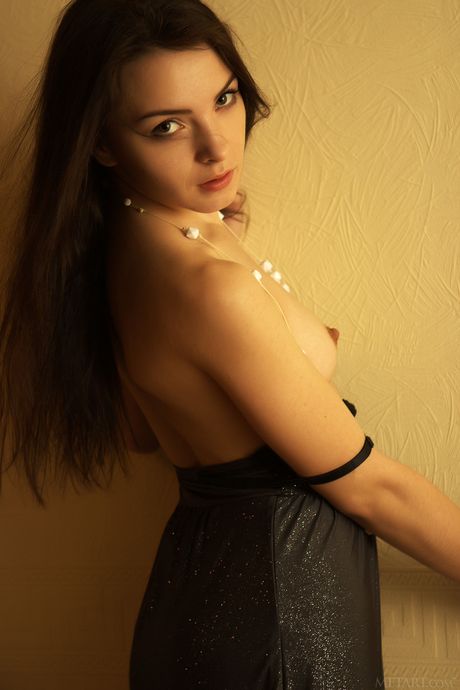 Met Art: 可爱的少女 Una Piccola 展示她的大奶子,并穿着高跟鞋摆出裸体姿势